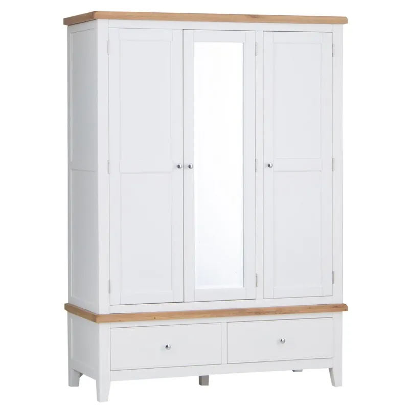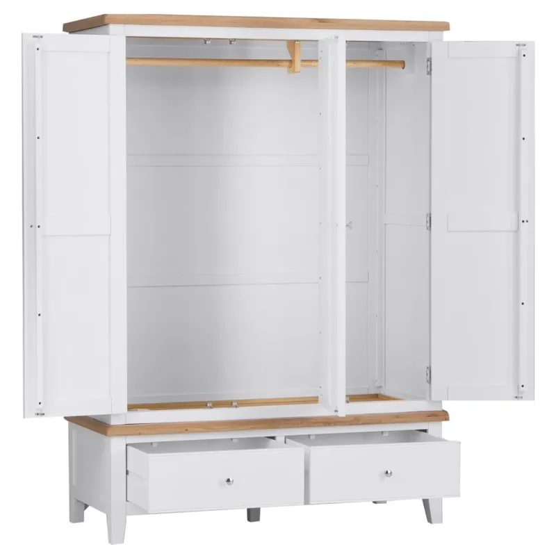 Whether you’re redecorating a farmhouse or modernizing a contemporary space, the Eaton White Painted Oak 3 Door Wardrobe complements various interior styles. Its versatile design makes it a practical choice for any home.