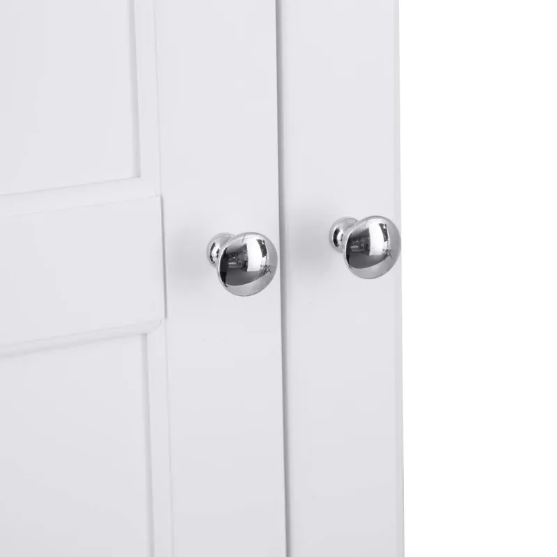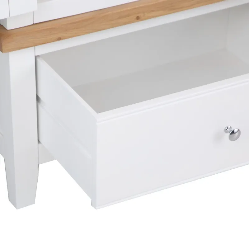 Fashioned with a strong oak top and a durable white painted frame, this wardrobe is built to last. The chrome handles add a slick touch, enhancing both functionality and aesthetics.