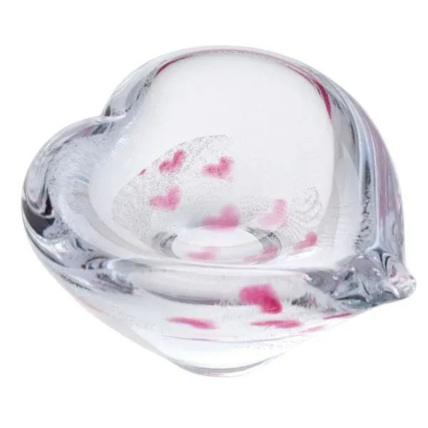 This beautiful handcrafted glass “Endless Love” dish from Caithness Glass is in a heart shape with pink hearts in the base. A stunning symbol of everlasting love.