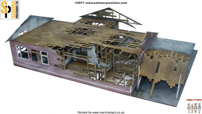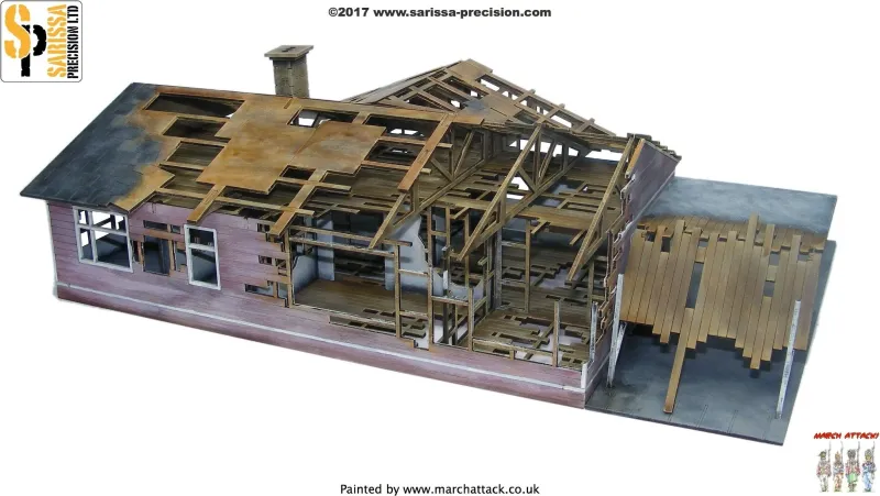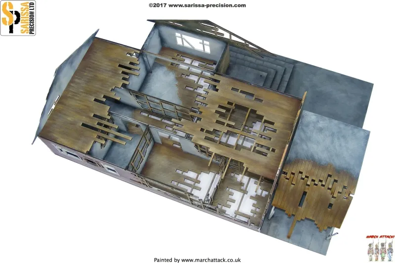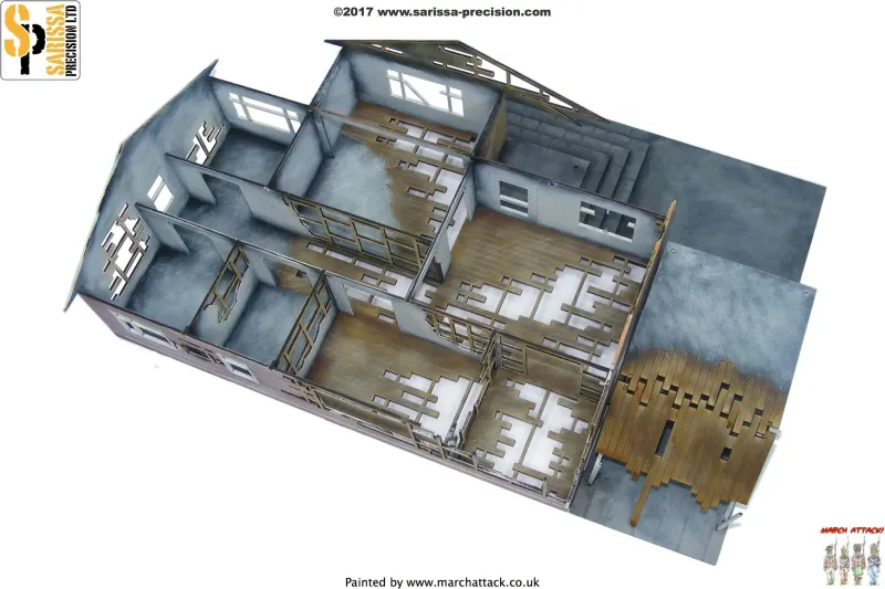 With its retro sixties design and considerable amount of structural damage, this residential ranch is perfect for tabletop games or dioramas with a pulp, alternative history Cold War or post-apocalyptic America setting. Supplied unassembled and unpainted in kit form with complete instructions. Any models or accessories shown are for scale purposes only and are not included. |