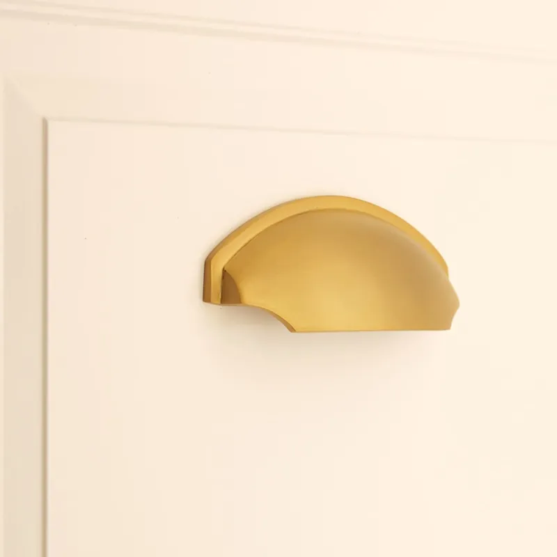 The ‘Tulip Cup Pull’ cabinet drawer handle with its modern aesthetic is characterised by its contemporary and timeless style. This solid forged brass handle with a rounded edged is structured in the form of a shell and allows for a ideal grip for all types of hands with a concealed fixing, available in finishes that sits within ongoing design trends around the home.