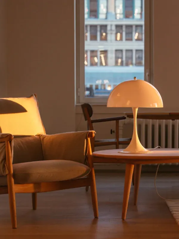 The Panthella Table Lamp has a disinfect geometric shape that reflects soft light throughout the room. The Panthella Table Lamp is designed with a symmetrical shade and base, distributing a balanced light from its minimalistic shape. The beauty of this lamp is its versatility – it is emblematic of 1970s style, yet its simplistic form allows it to fit into a variety of contemporary settings.