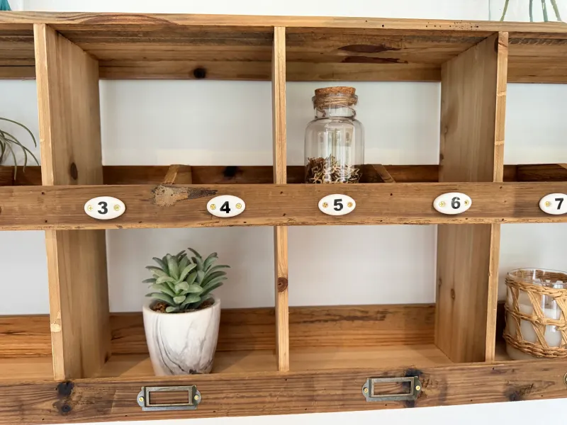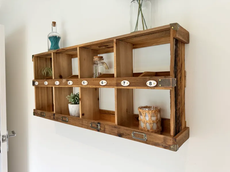 Farmhouse Style Wooden Wall Shelving with 8 Numbered Pigeon Holes