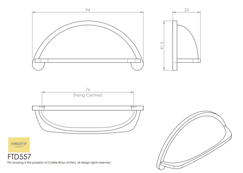 - Size 94mm Wide x 23mm High x 76mm Fixing Centres