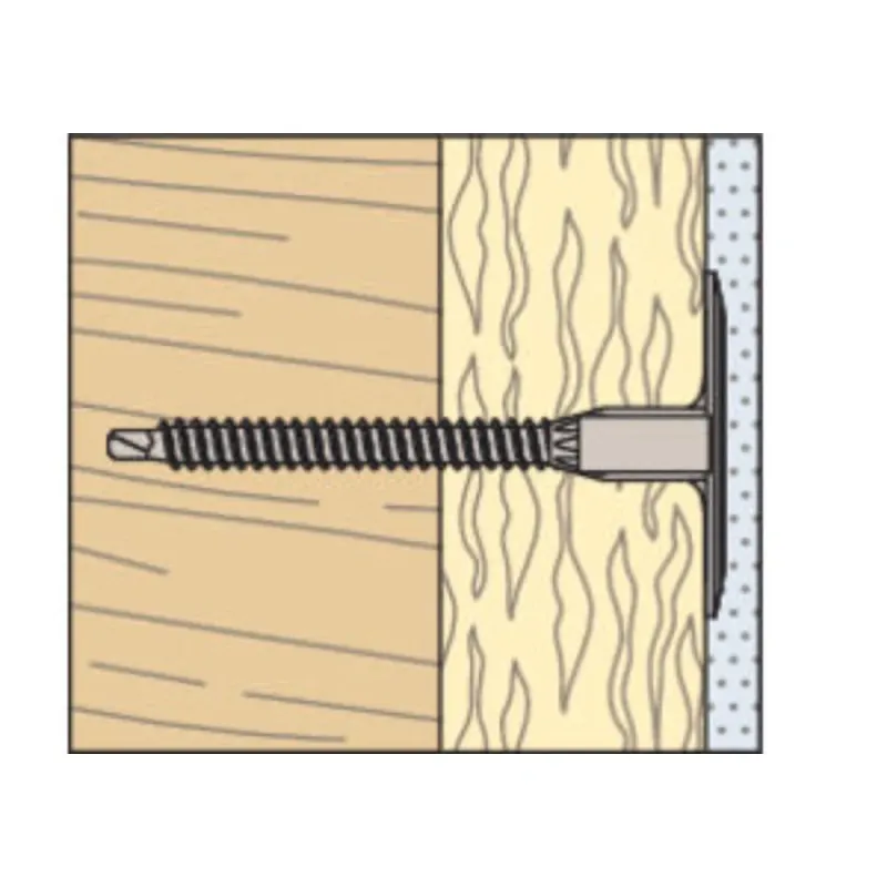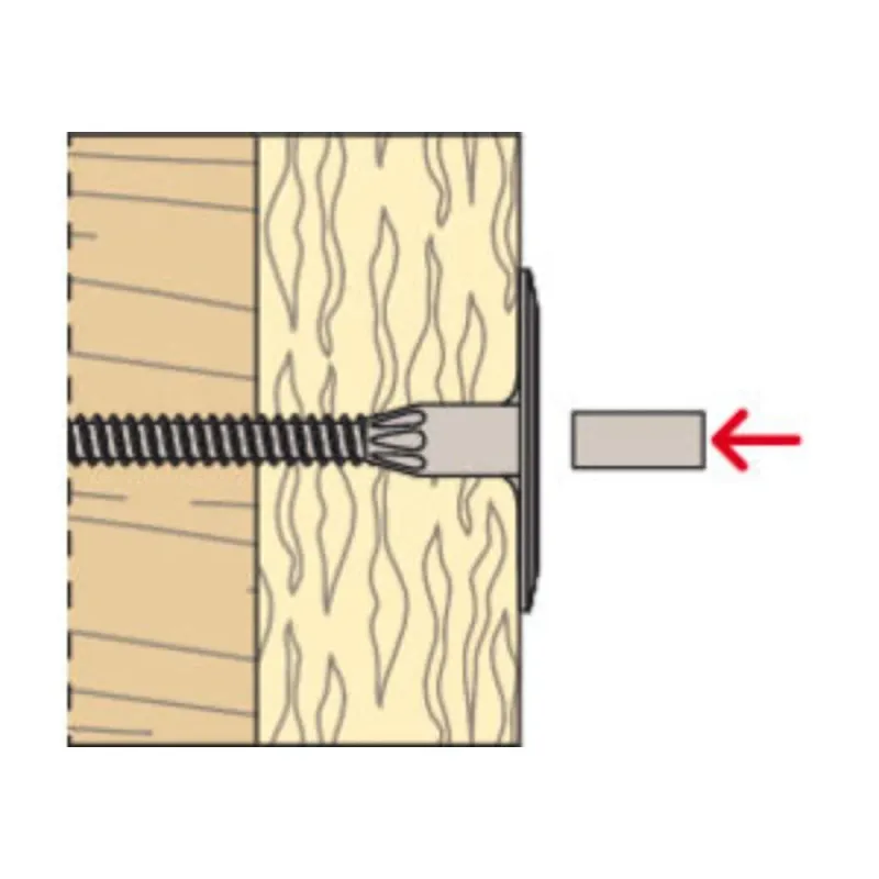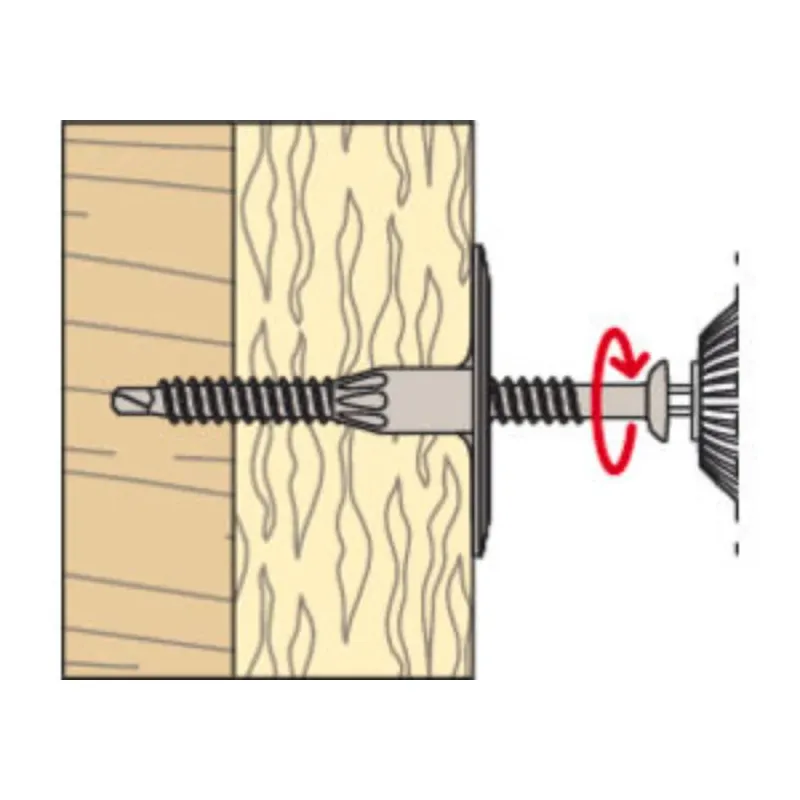 The fischer support disc DHT is ideal for fixing pressure-resistant insulation in wood and wooden materials and sheet thickness up to 0.8 mm. The DHT comprises a support disc made from high-quality nylon-based and a prefitted screw. The extremely flat disc construction allows for use with delicate layers of plaster and reinforcements. The DHT is set in the push-through installation with a cordless powerdriver without pre-drilling in wood and wooden materials. This saves time and money. After installation, seal the head with the screw plug. This reduces the heat transmission and stops marks on the plaster surface.