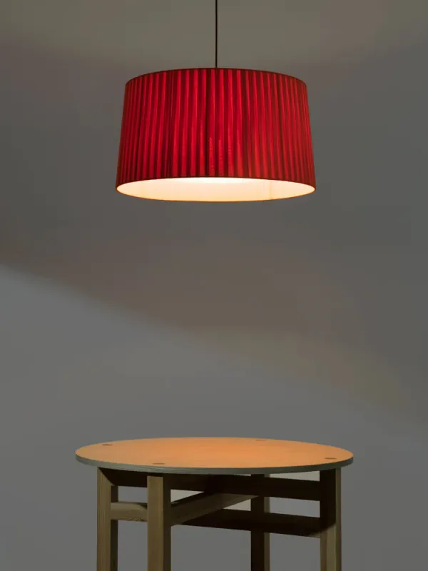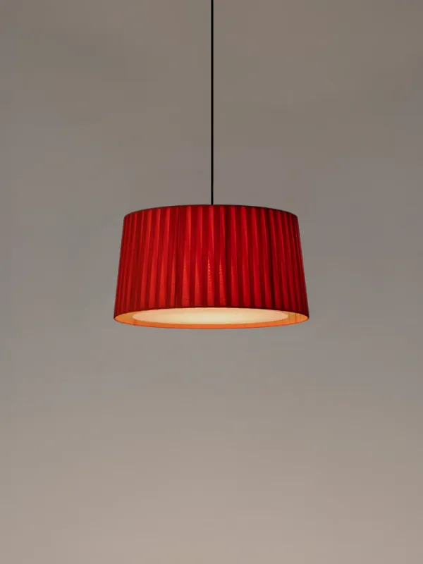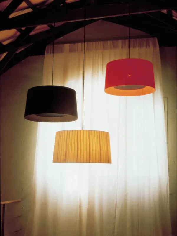 GT5 and GT6 are hanging lamps with ribboned shades whose mere presence imbues a room with character. Santa & Cole advocates the employ of ribboned shades to dress up every kind of light source, exploring different materials and playing with colours and hues.