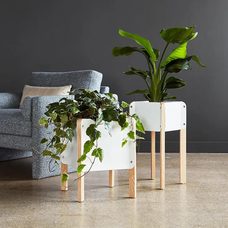 Inspired by Bauhaus design principles, the Atrium Planter lets you nurture your green thumb at home or the office. Form follows function with clear shapes that let your plants do the talking. The industrial design of the planter is contrasted by warm wood legs that provide plenty of support. Available in two heights, it easily melds into modern surroundings. High or low, how does your garden grow.