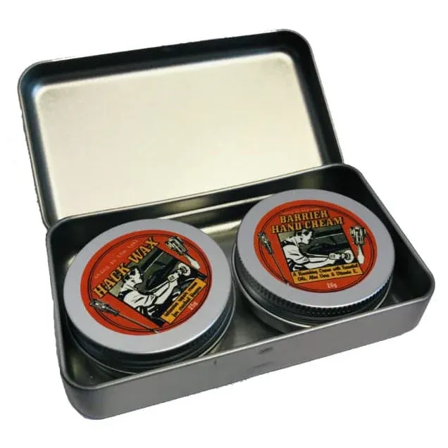 For anyone working with their hands whether tinkering with engines or digging in the garden this little set will be a godsend. Barrier Hand Cream to deeply moisturise and protect your hands & Hack Wax to repair cracks and splits.