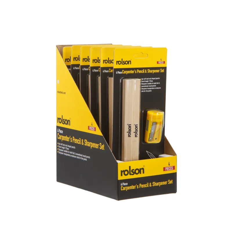 4 Piece Carpenters Pencil & Sharpener – 4 Piece oval shaped pencils, with sharpener. Suitable for all types of carpenters pencils with built in emery board for fine sharpening