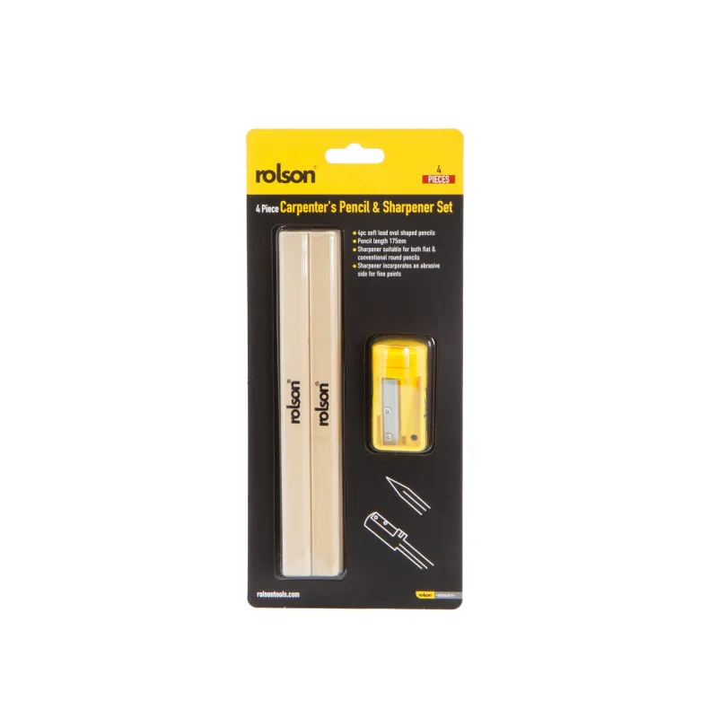This comprehensive set includes four oval-profile carpenter’s pencils paired with a dedicated sharpener featuring an integrated emery board. The sharpener accommodates conventional carpenter’s pencil dimensions and delivers precise, fine-edged points ideal for accurate marking on timber and construction materials. An fundamental toolkit for professionals requiring consistent line clarity and marking accuracy on the job site.