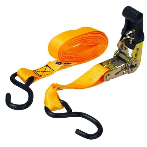 4 Piece Ratchet Tie Down – Fabricated from strong polyester webbing with ratcheting locking buckle. Sizes 4.6m x 25mm, Breaking Strength 700kg , Safe Working Load 250daN