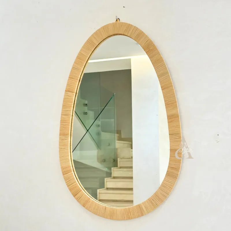 Ce miroir mural ovale au cadre en osier tressé est une pièce artisanale authentique qui apporte une touche naturelle et chaleureuse à tout intérieur. Réalisé à la major par des artisans marocains, chaque modèle est unique, avec un tressage d’osier qui reflète le savoir-faire traditionnel. Disponible en trois formats pour s’adapter à toutes les envies déco : seul ou en accumulation, dans une entrée, une chambre ou une salle de bain.