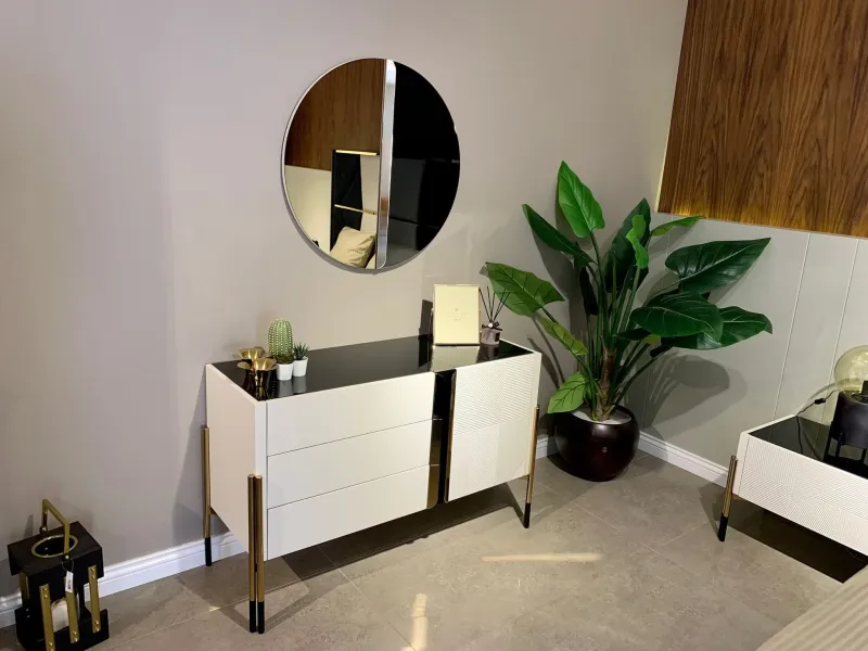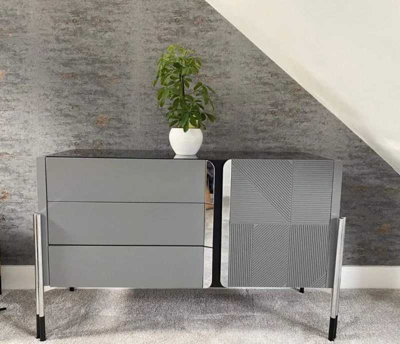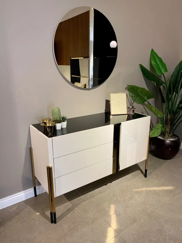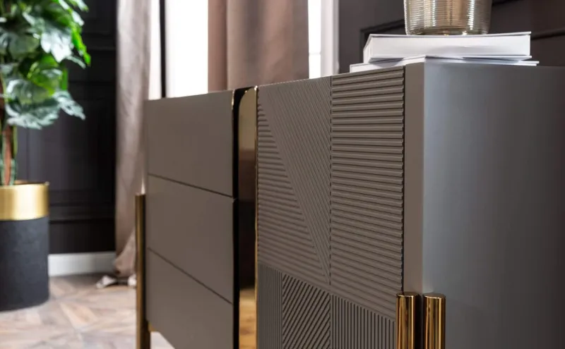 Tidy up your bedroom effortlessly with the stylish Elite Chest of Drawers. Featuring clean lines and elegant gold details, this contemporary piece will enhance your bedroom’s aesthetic. Pair it with a matching mirror for a complete look.