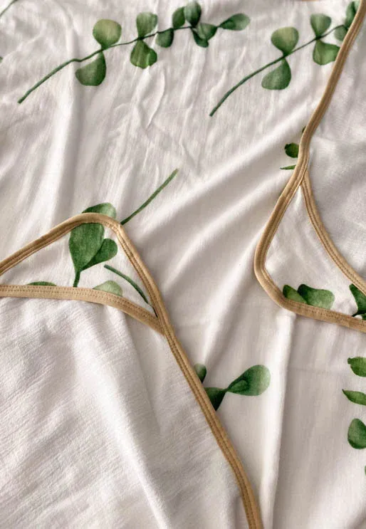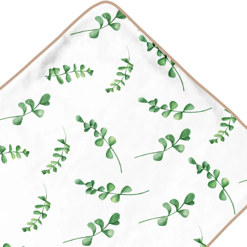 100% algodão, alta absorção, conforto e hipoalergênico. a borda é areia e o forro é branco