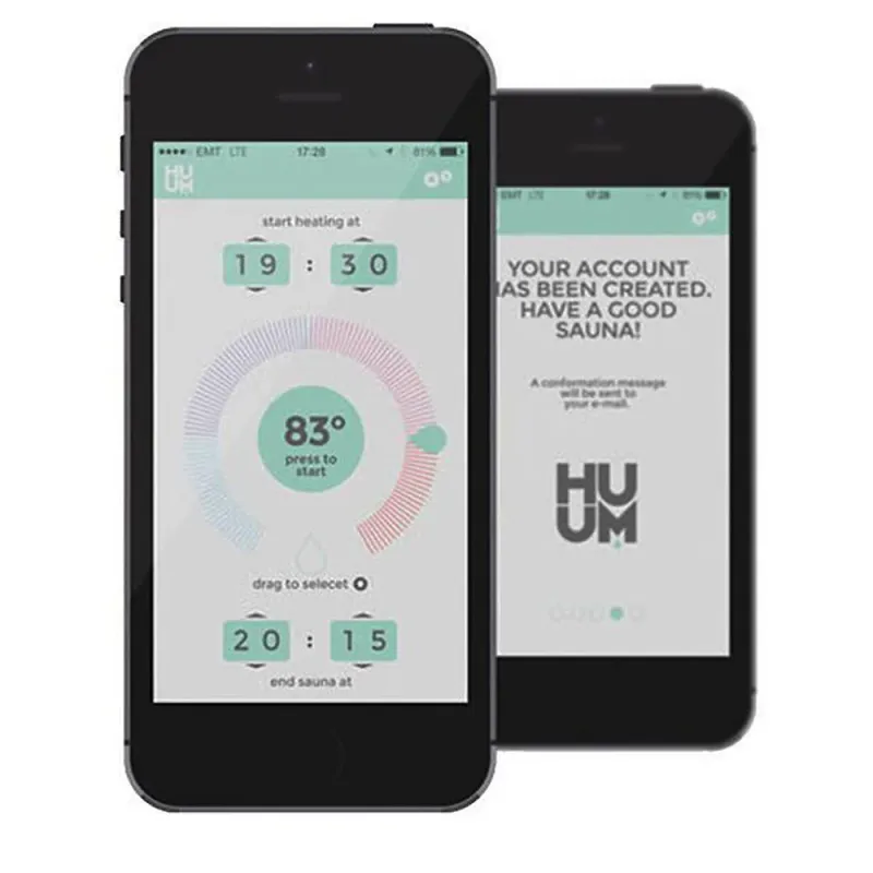 Transform your sauna experience with the sophisticated HUUM UKU WiFi control system. This intelligent unit allows you to operate all sauna functions—lighting, ventilation, timer, and temperature—from both the sleek bracket-mounted control panel and remotely via the dedicated HUUM mobile app. Preheat your sauna to the perfect temperature before you arrive home, monitor usage, and adjust settings from anywhere with WiFi connectivity.