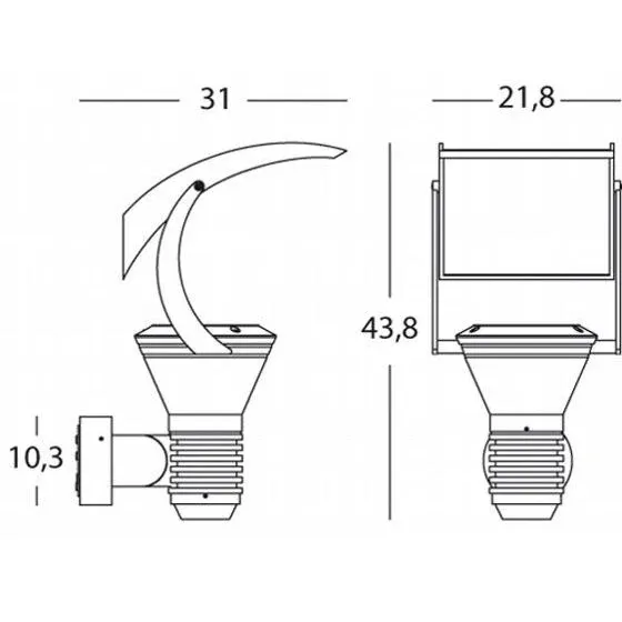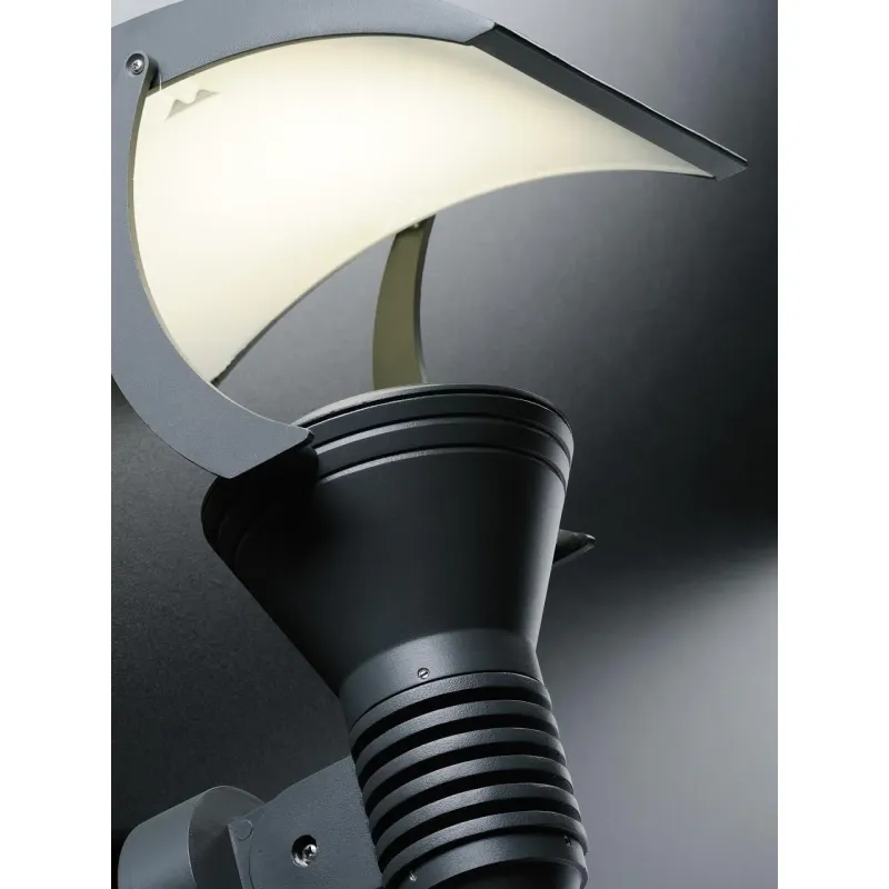 Struttura in pressofusione di alluminio orientabile. Diffusori in vetro trasparente. Parabola riflettente in alluminio. Controbase e accessori per il fissaggio. Portalampada in porcellana con attacco E27. Altezza lampada: max 140mm. Lampada esclusa. Alime