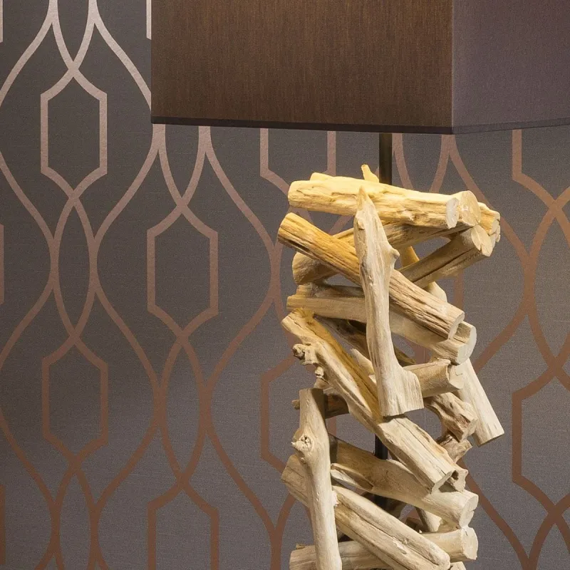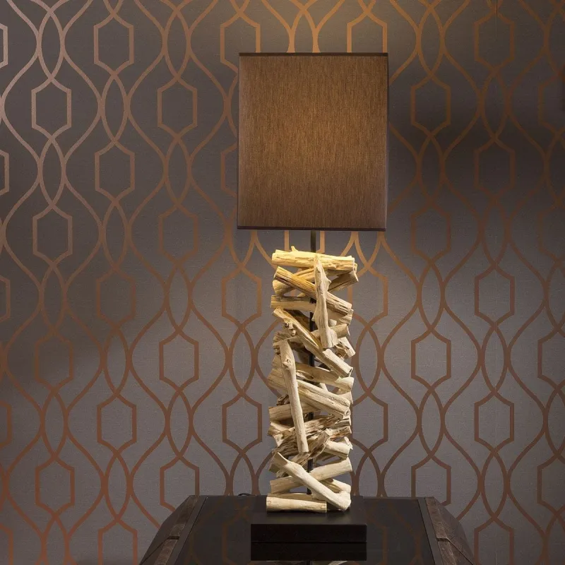 A Truly Stunning & Unique Driftwood Design with Chic Black cotton shade. All mounted on a Black wooden base.