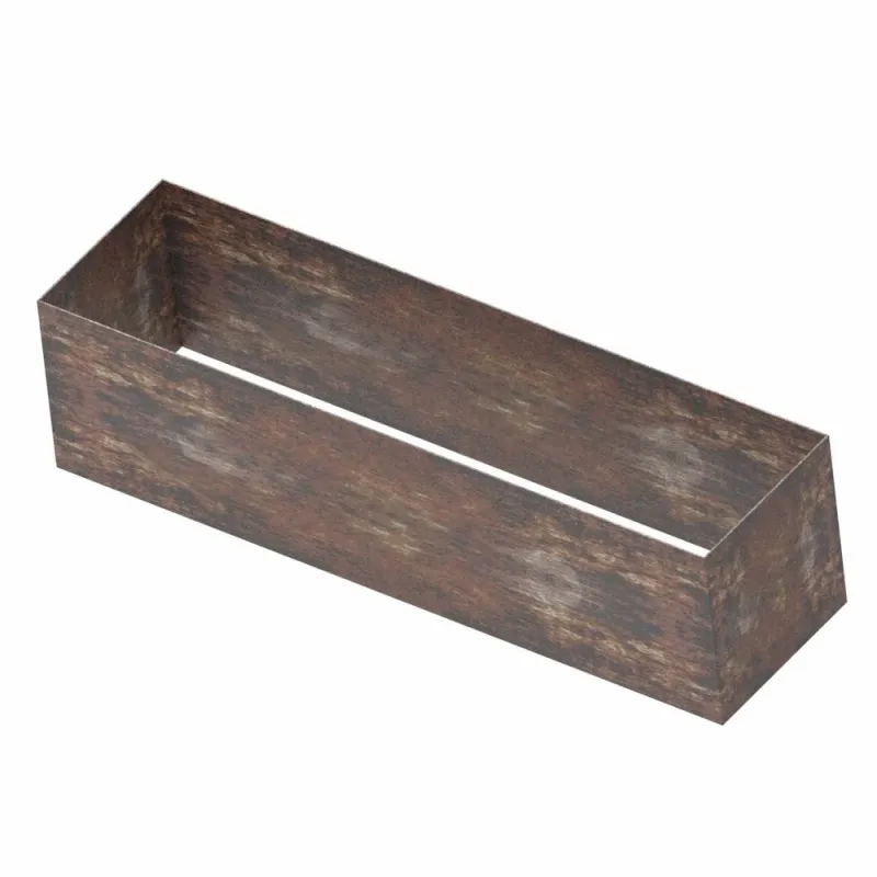 Our troughs are fabricated in any dimensions with or without steel balled feet and drainage holes; internal bracing guarantees the larger ones do not bow with the weight of soil.