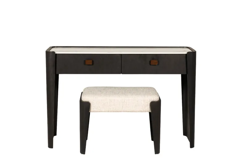 Rhodes Stool in Ebony—a pinnacle of luxury and sophistication, perfectly complementing the Rhodes 2 Drawer Table. This stool exudes premium elegance, enhancing the ambiance of any room.