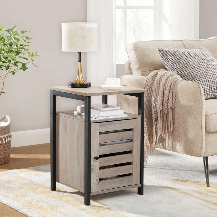 DISCOVER A NEW WORLD: Press lightly on the louvered door of this 15.7”L x 15.7”W x 23.6”H, compact cabinet, and it will reveal a large compartment that can be divided with a height-adjustable shelf to give space to all your needs