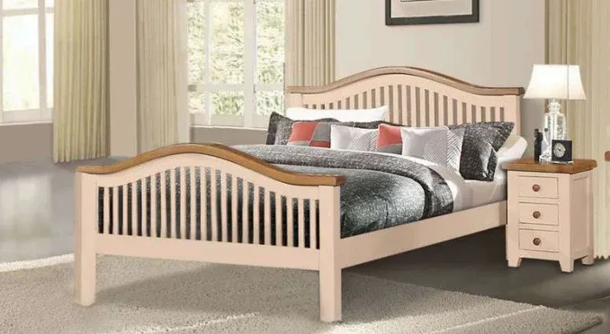The Juliet Bedroom range is finished in solid oak with a semi-gloss lacquer seal. The rounded oak corners give a gentle feel to each solid piece. The champagne colour combined with the rounded plain oak knobs exudes class.