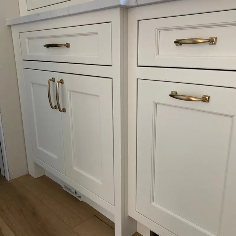 Kelly No.2 Cabinet Knob and Drawer Pulls in Champagne Bronze ✔ Maintains warranty on cabinet finishes ✔ Fits European-style cabinet systems 🛒 Enhance Furniture Protection