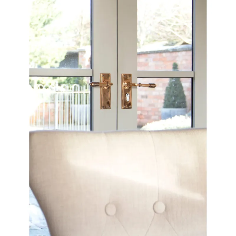 Our decorative Reeded lever handle range is forged from plain bronze. The reeded part of the handle accentuates the hand finishing carried out by our expert craftsmen. A optimal design choice for any home, with many matching products available.