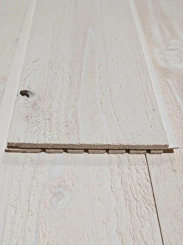 Lambris peint en blanc bois brut – – L=