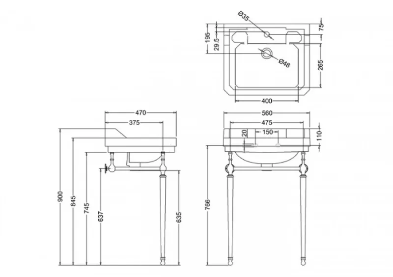 Vasque rectangulaire et console Edouardien BURLINGTON 56 cm