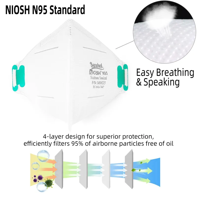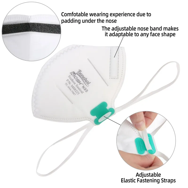 - NIOSH N95 CERTIFIED: 20PCS NIOSH N95 standard dust mask swiftly filters 95% of airborne particles free of oil, protection against excellent dust, solid and liquid particles, against pm 2.5 air pollution, smog, smoke, suitable for home and professional use, indoor or outdoor use