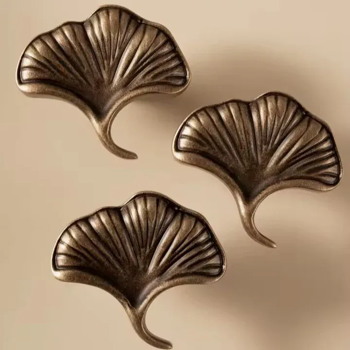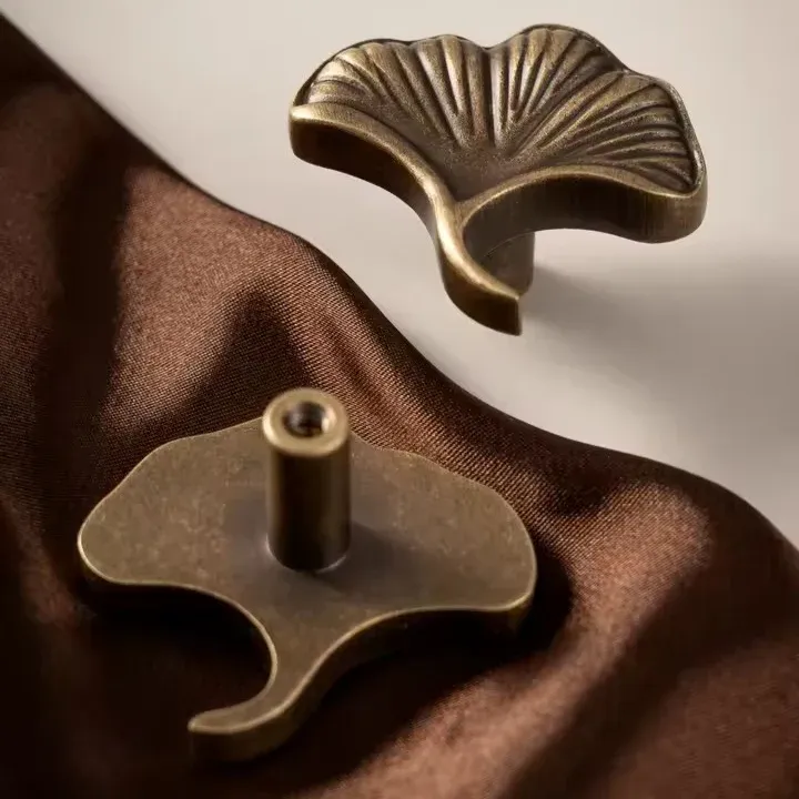 The LUNA Antique Brass Drawer Knob embodies nature-inspired elegance, featuring a delicate Ginkgo Biloba leaf design that symbolizes resilience and longevity. Its solid brass construction ensures durability and a timeless charm, making it a luxurious addition to dressers, cabinets, and wardrobes.