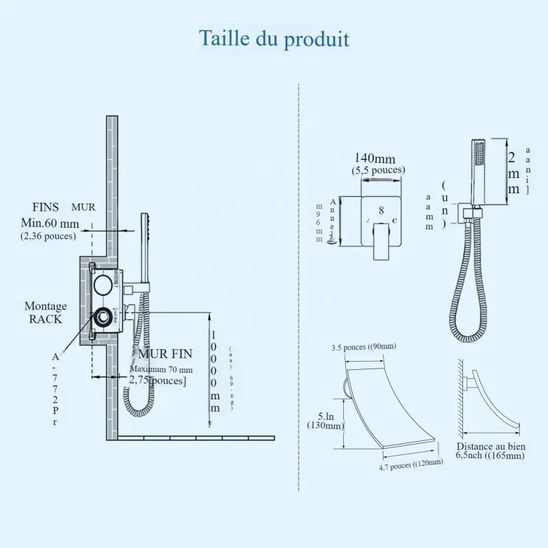 Découvrez le Robinet Mural Baignoire Fontaine de la collection Robinet Baignoire. Ce robinet au design moderne et raffiné, avec sa finition en or ou shiny metal, apporte une touche d’élégance à votre salle de bain.