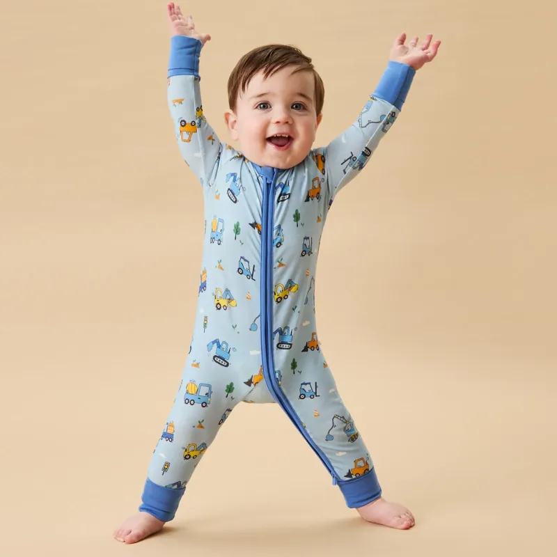 For little ones who love to zoom through the day, our Mighty Machines Clever Zip Sleepsuit is designed to keep them comfy all night. Assembled from supersoft modal with a fun truck print, plus a two-way zip for speedy changes—because even the busiest babies need their rest!