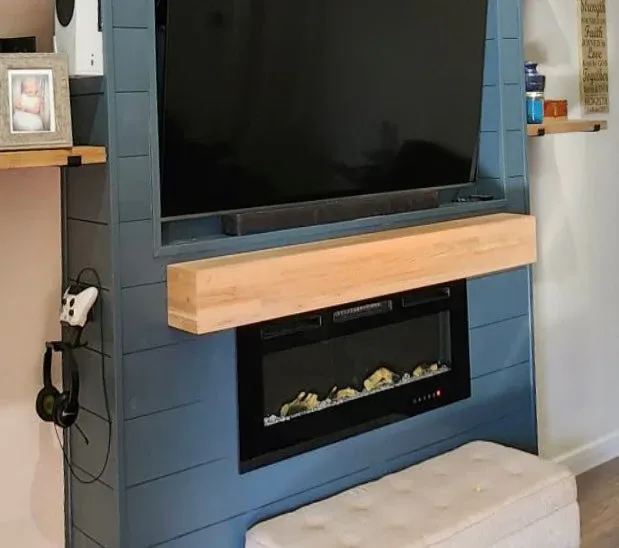 Mantel Description. This mantel is fabricated of reclaimed million mile oak. Reclaimed from cargo containers that have roughly a million miles of wear and tear on it. We can custom the size up to 10×10 and up to 10 foot tall It has a butcher block style look with a slight variant in color and texture. that only comes with genuine reclaimed wood. This is one AMAZING, unique, one-of-a-kind mantel.