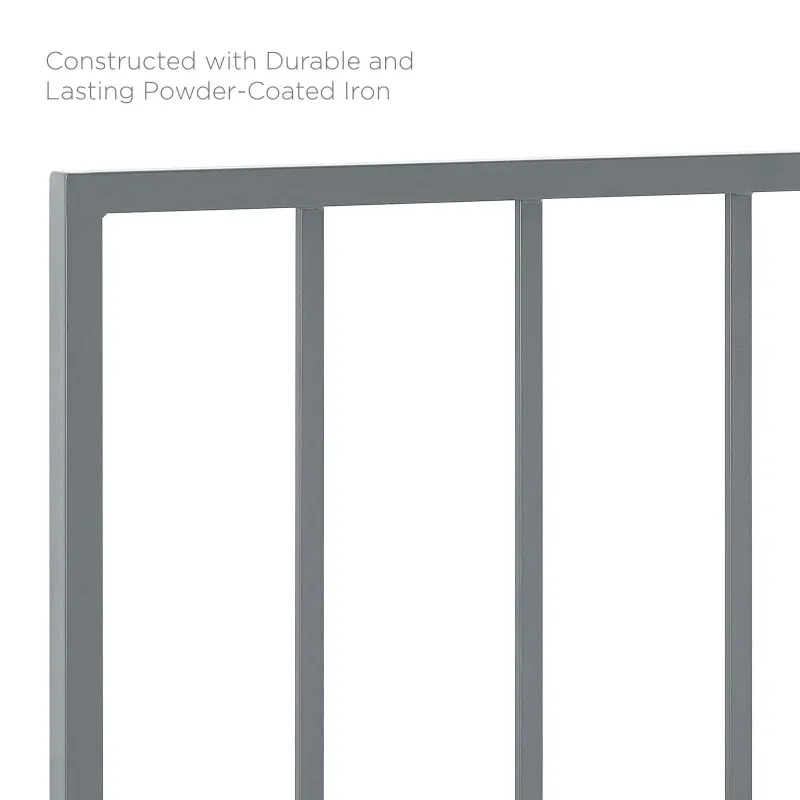 Elevate the look and feel of a master bedroom or guest bedroom with the Tatum Metal King Headboard. Featuring a streamlined silhouette with squared lines and spindle detail, this king size headboard is a timeless design with a contemporary feel. Durable iron steel with a powder coated finish makes up the frame of this headboard for a sturdy construction that lasts. Create an aesthetic backdrop for all kinds of bedding styles with this height-adjustable headboard that’s complete with seven different mounting positions to fit most king beds. Assembly required.