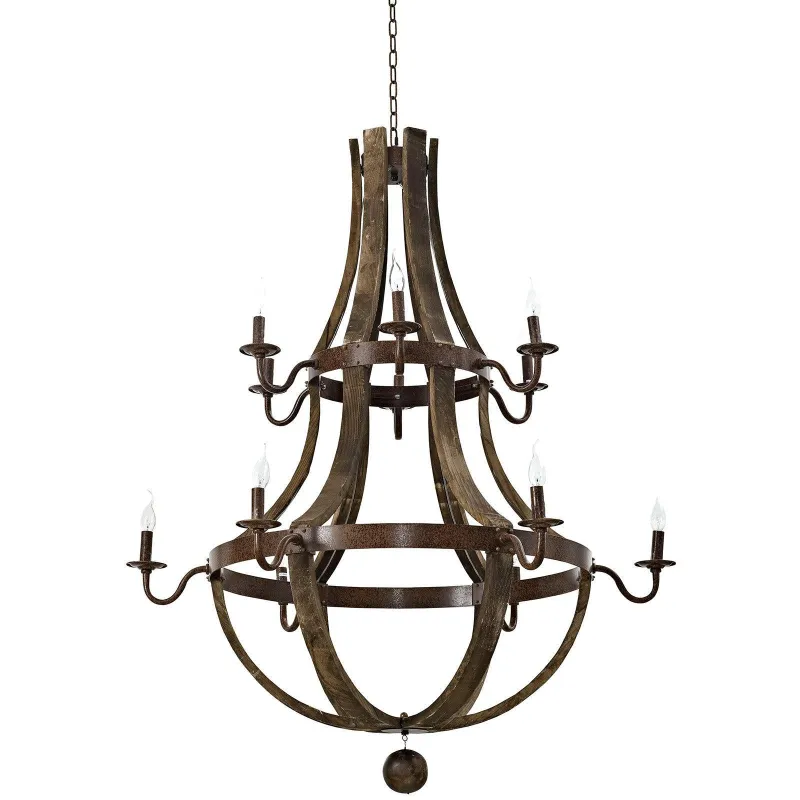 - Vintage Modern Chandelier Steel and Distressed Hardwood Twelve E12/25W Bulbs (Not Included) Adjustable 1.5-63″ Chain Hanging Steel Ball UL Listed and Approved Assembly Required