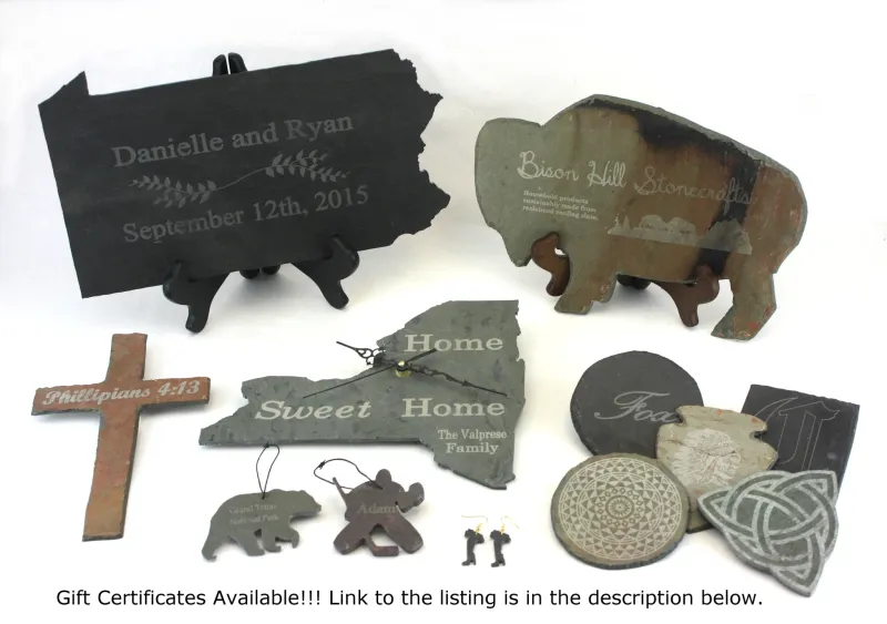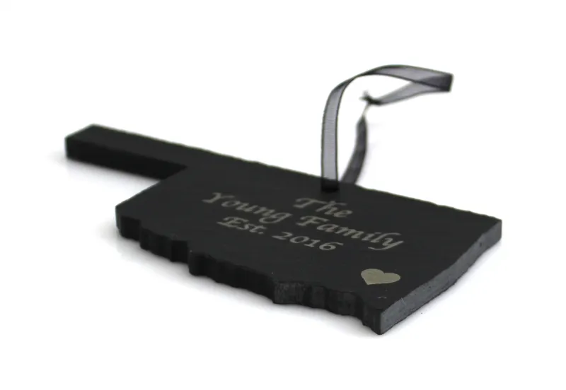 Slate Christmas Ornaments from Bison Hill Stonecrafts will look great on your tree. They are durable, prolonged lasting, personal mementos that can be given as gifts for any occasion. Personalized etching is available to engrave names, initials, designs, or anything else you can think of. There is an ornament for everyone!