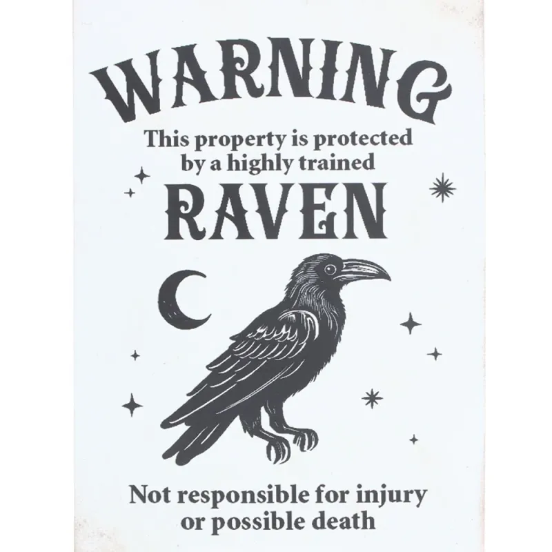Warn your guests with this alloy hanging sign declaring ‘Protected by a Raven,’ complete with gothic raven and moon imagery. An ideal addition to gothic entryways or a quirky gift for fans of dark humour.