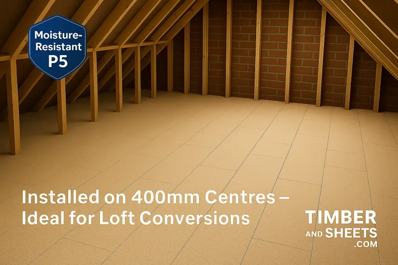 P5 Chipboard Flooring 8×2 – 2400 x 600 x 18mm Tongue & Groove – Moisture Resistant