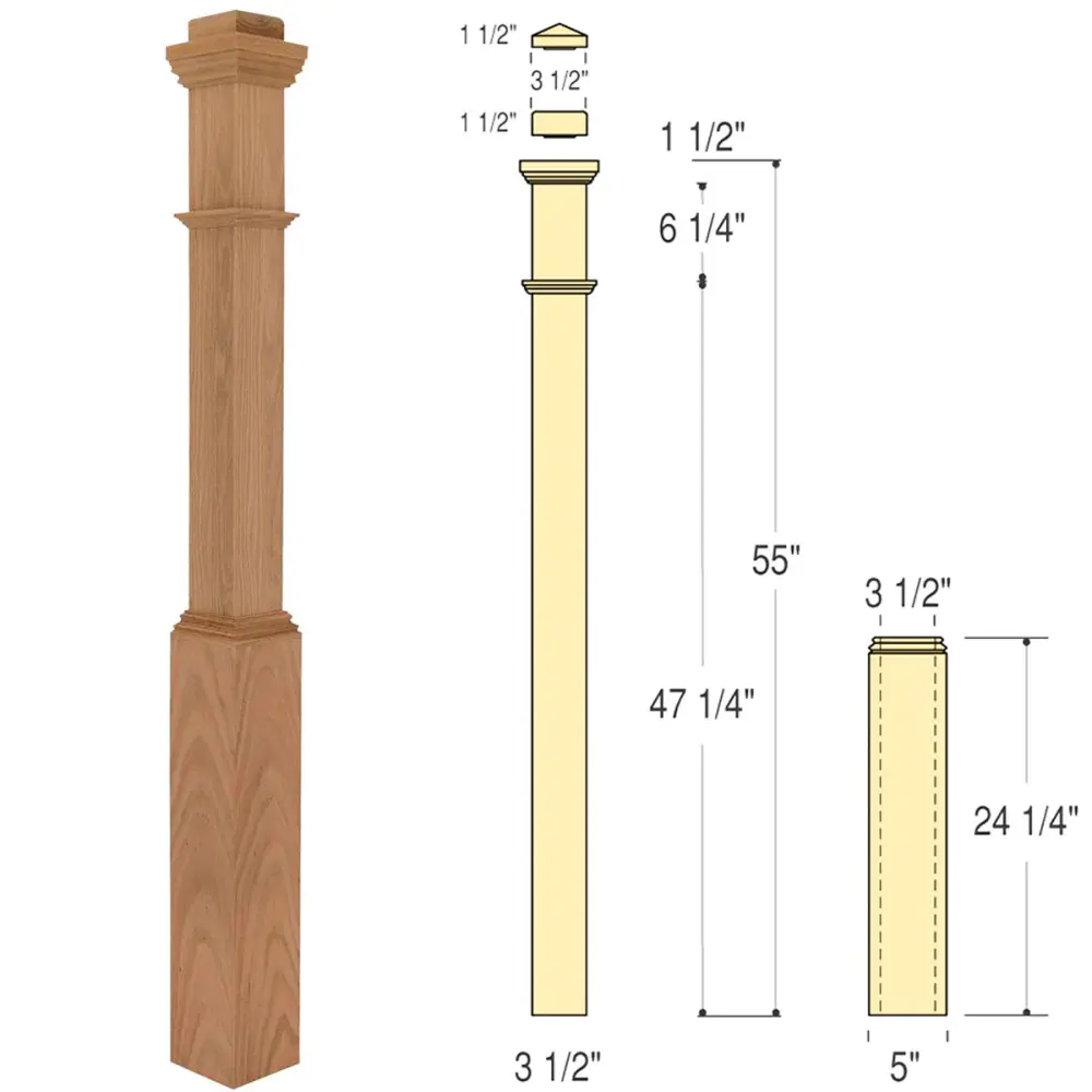 Our Wood Newel Posts are available in a full-size variety of species including: Oak, Poplar, Cherry, Maple, Mahogany, Alder and more. Pricing may vary for wood species other than Red Oak or White Oak as they are tailored made to order. Please call to verify pricing prior to placing an order.