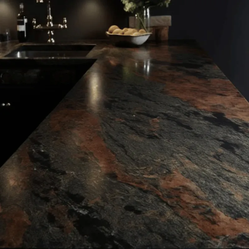 Parfait comme plan de travail noir, l’Indian Aurora apporte une élégance et un style inégalés à tout espace, grâce à ses teintes profondes et ses veines distinctives.