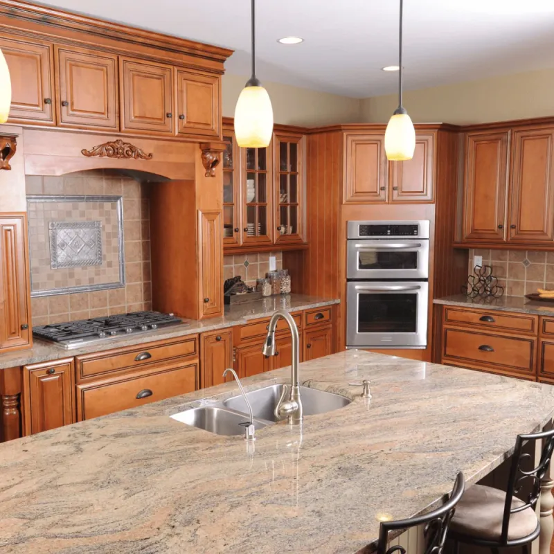 Avec sa texture allant de moyenne à grossière, le granit Juparana Colombo est renommé pour sa durabilité et sa capacité à résister aux éraflures, à la chaleur et aux taches, le rendant idéal pour les cuisines et les espaces de vie très fréquentés.