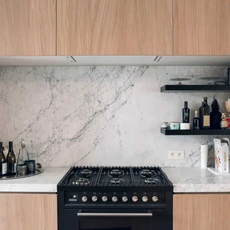 Ce plan de travail est un hommage à la beauté naturelle du marbre blanc, apportant une touche de splendeur lumineuse à toute cuisine haut de gamme.