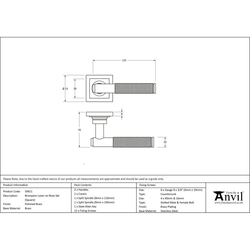 Polished Brass Brompton Lever on Rose Set (Square) | From