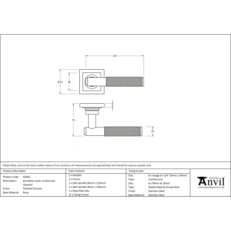Polished Chrome Brompton Lever on Rose Set (Square) | From ✓ 30-day money-back guarantee ✓ Top Rated Quality – Customer Approved ► Award-Winning Service