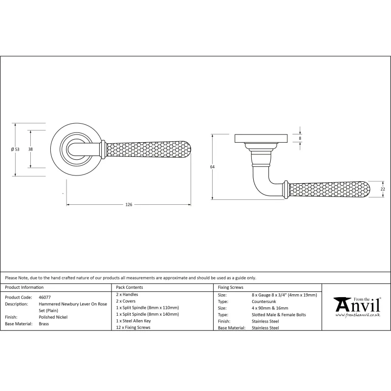 Polished Nickel Hammered Newbury Lever on Rose Set (Plain) ✓ 1-Year Manufacturer Warranty ✓ Trusted Brand – 10K+ Reviews ► Buy One, Get One Free