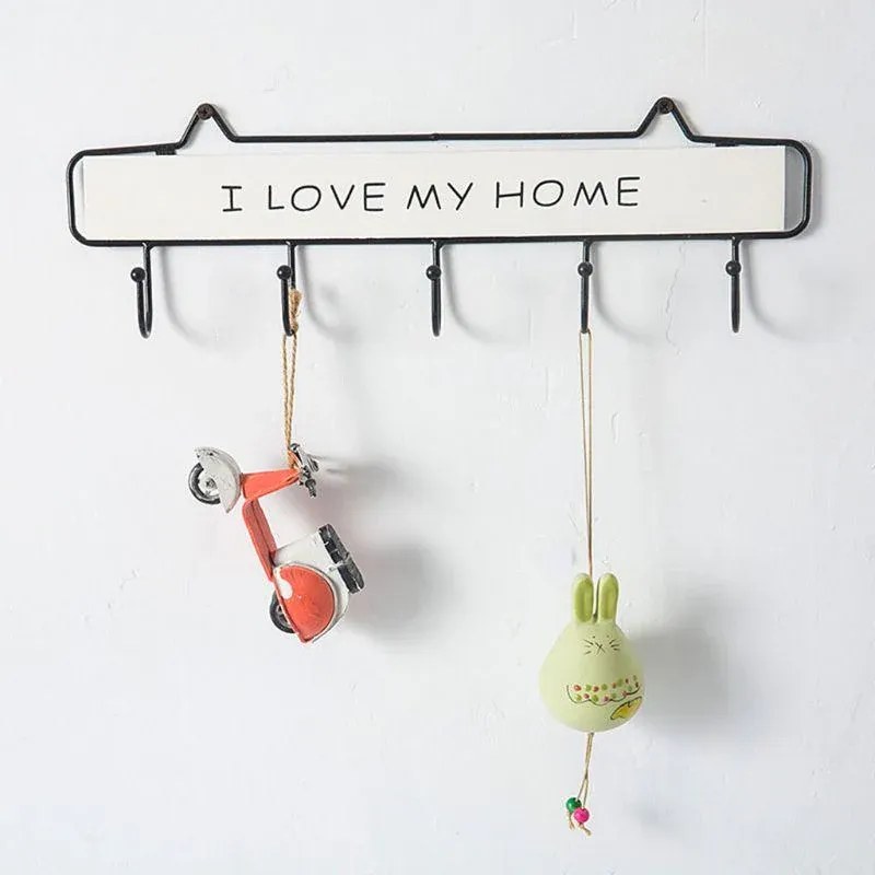 Este porta-chaves parede “I Love My Home”, feito de madeira e ferro, é tanto um acessório decorativo como uma forma prática de organizar as chaves. Os seus materiais rústicos manterão a sua casa em ordem durante muitos anos.