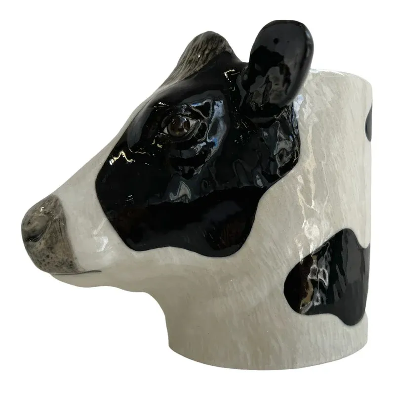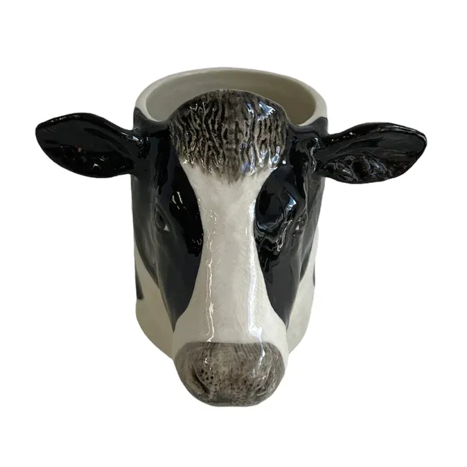 A fun addition to your desk that will store your pen and pencils tidy and handy. The ceramic pencil pot is shaped and hand-painted like a Friesian Cow. Textured, detailed, gorgeous.