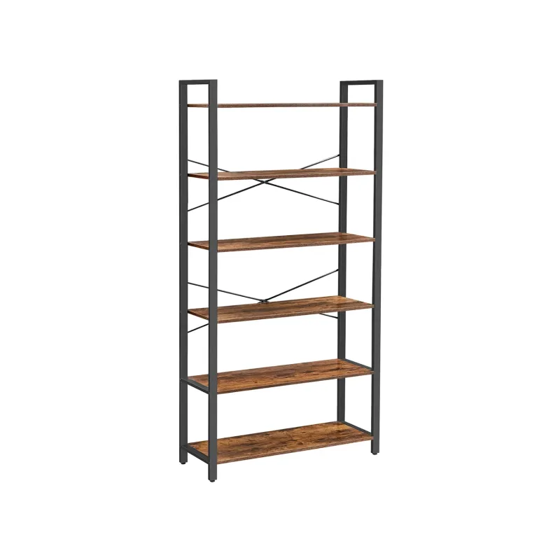 VASAGLE 6-Tier Bookshelf, Home Office Bookcase, Storage Rack with Hardened Frame, for Living Room, Office, Study, Hallway, 73.2 Inches High, Industrial Style, Rustic Brown and Black ULLS062B01