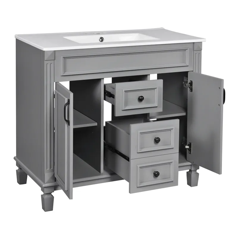 - Spacious Interior: Generous drawer and cabinet space keeps bathroom essentials organized and out of reach of water